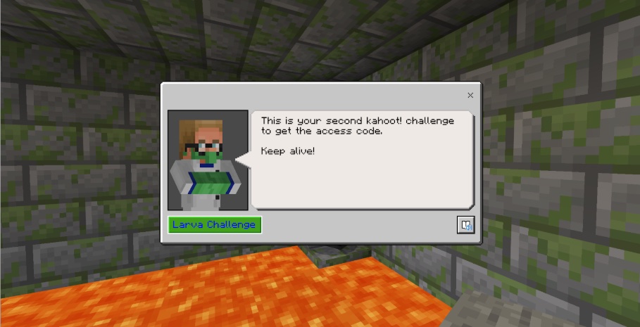It is easy to get started. Simply take the links of the student-paced Kahoot! challenges that you have prepared and embed the links on a Non Player Character (NPC) in your Minecraft world. Here’s how to do it:
